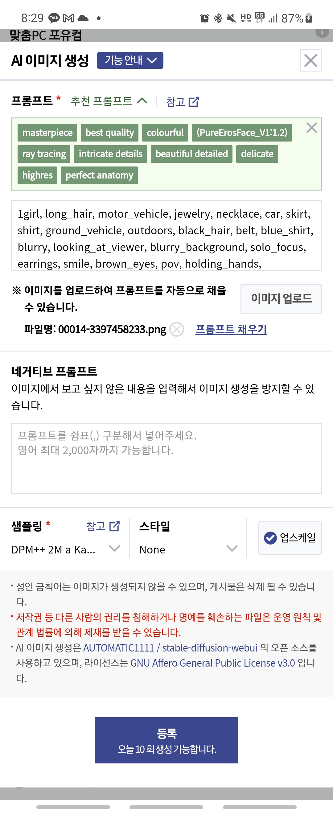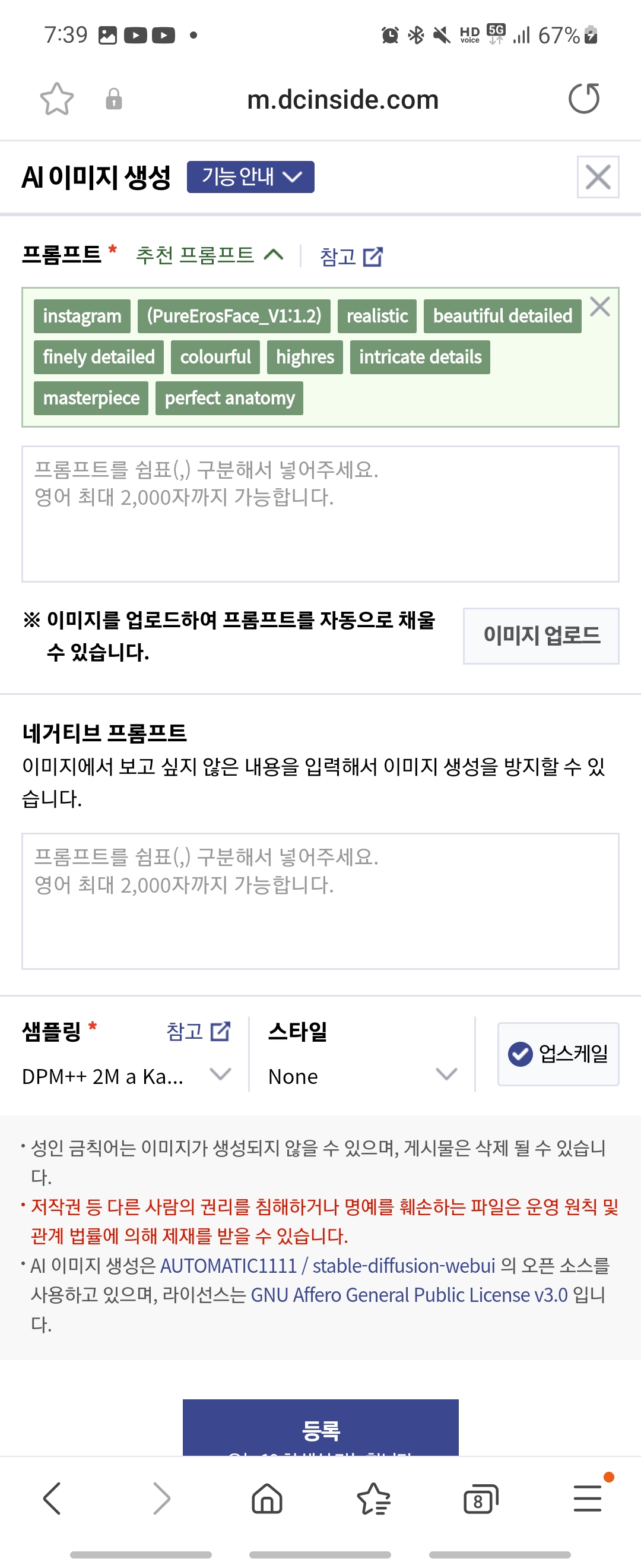 DC Inside의 AI 이미지 프롬프트 추출 기능