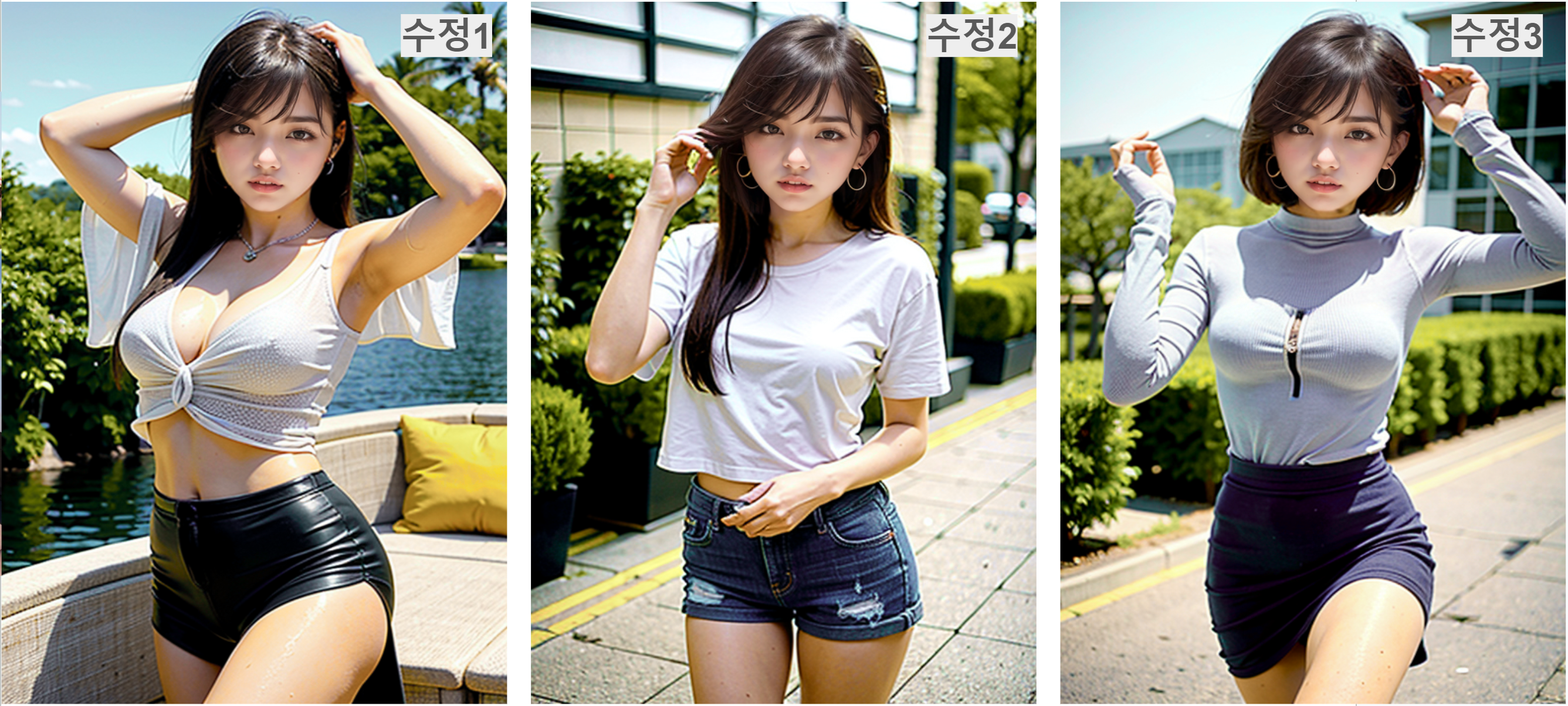 3번의 실험 모두 원하는 바인 동일한 얼굴에 전혀 다른 장소와 의상, 동작, 그리고 머리모양까지 변경할 수 있음을 확인할 수 있었습니다. Inpaint 기능은 정말 최고입니다.